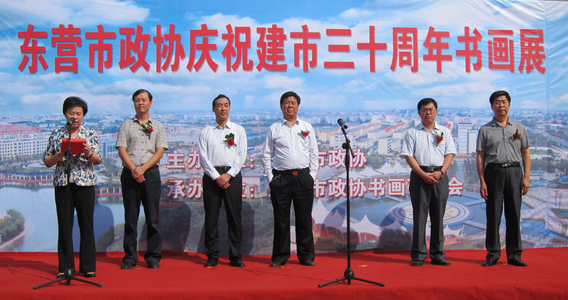 2013年9月29日上午由东营市政协主办的,东营市政协书画研究会承办的《喜庆东营市建市三十周年书画摄影展》在黄河美术馆开幕。出席今天开幕式的领导同志有:市政协副主席王少飞同志;市政协秘书长高雳等领导同志。