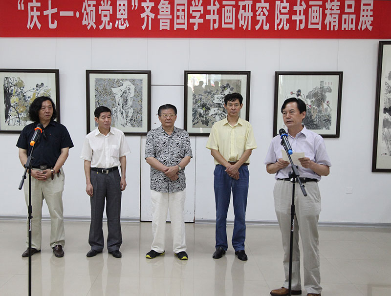 2014年7月6日,由齐鲁国学书画研究院主办,东营区文学艺术界联合会、黄河美术馆承办的“庆七一,颂党恩”齐鲁国学书画研究院书画精品展于上午九点在黄河美术馆举办开幕仪式。参加了开幕仪式的领导嘉宾有:齐鲁国学书画研究院院长、原市政协主席陈锡山,东营市委宣传部常务副部长侯岱印,齐鲁国学书画研究院常务副院长张卫,齐鲁国学书画研究院副院长官建国、齐鲁国学书画研究院秘书长潘屴。