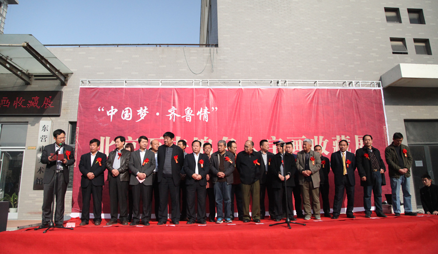 2014年11月22日上午,由中共东营市委宣传部、市文化广电新闻出版局、市文学艺术界联合会主办,北京万夫锦文化发展有限公司、东营市美术馆、东营市美术家协会、黄河美术馆承办的“北京万夫锦名人书画收藏展”在黄河美术馆开幕。 出席今天开幕仪式的领导和嘉宾:原中央书记处动态办主任李斌先生;原东营市人大常委会副主任、东营市农民书法美术研究会会长安家训先生;原东营市人大常委会副主任杨志良先生;原东营市人大常委会副主任王洪胜先生;甘肃建投建设公司总经理杨贵良先生;北京书画报社社长司马春光先生;原滨州市副市长、著名书法家董吉增先生; 原东营市党校常务副校长赵福恩先生;中共东营市委宣传部副部长崔建国先生;中国国家书画院副院长、中国工艺美术家协会副主席李叔平先生;东营市文学艺术界联合会副主席、东营市画廊联盟主席王玉文先生; 山东省美协理事、东营市美术家协会主席陈宏光先生;中国美协会员、中国画家协会理事臧永先生;北京万夫锦文化发展有限公司总经理王卫廷先生;莱芜金地源房地产公司总经理李尚贤先生;德州市运河文化艺术促进会理事、海峡两岸文化交流协会副主席牟书科先生;著名青年画家李志峰先生;中国画院青岛分院副院长刘宗月先生;青岛即东书画联谊会会长侯振昌先生等。 |
