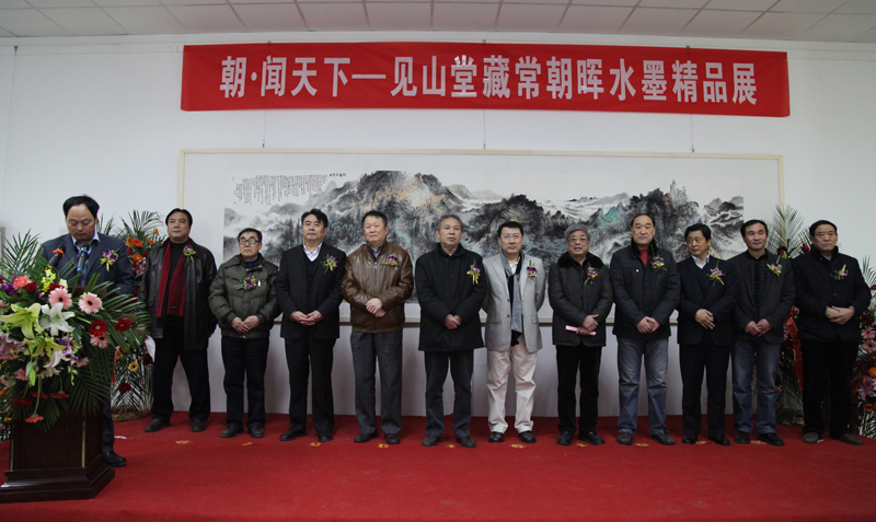 2015年元月10日上午,由东营市文化广电新闻出版局、山东青年画院主办,东营市美协、济南见山堂、东营市美术馆、滨州盛世德艺术品投资承办,东营市画廊联盟、黄河美术馆、滨州万溢艺术苑、东营瑞阳画院、东营光辉画馆、济南文仁轩画廊协办的“朝·闻天下——见山堂藏常朝晖水墨精品展”在黄河美术馆(东营市美术馆)开幕! 出席开幕仪式的领导和嘉宾有:原山东省委第七巡视组组长、黄蓝书画院院长、东营市文联名誉主席马登雨;东营市政协副主席王景春;东营市文化广电新闻出版局局长韩祥明;原东营市委宣传部常务副部长、东营市文联主席房崇岭;黄河口书画艺术研究会常务副主席刘春泉;原东营市委宣传部副部长张连富;济南见山堂艺术品投资公司董事长宋平;东营市政协书画艺术研究会副主席兼秘书长刘金宝;滨州盛世德艺术品投资公司董事长李明德;青州铭艺书画艺术公司董事长张铭义。 |