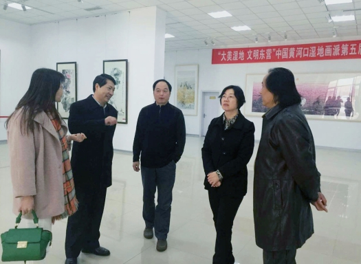 贾瑞霭部长到黄河美术馆参观黄河口湿地画派五周年作品展