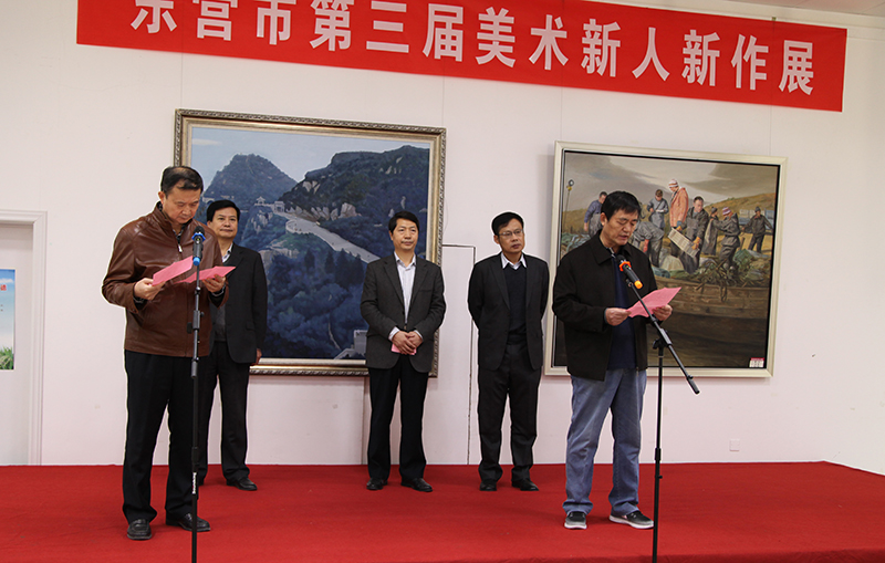出席展览开幕式的领导和嘉宾有:东营市文学艺术界联合会主席王毅;中国美协会员、山东省美协理事、东营市美协主席陈宏光;中共东营市委宣传部副部长崔建国;东营市文学艺术界联合会副主席王玉文;东营市文广新局局长崔相国。