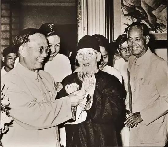 齐白石(中)与郭沫若(左)