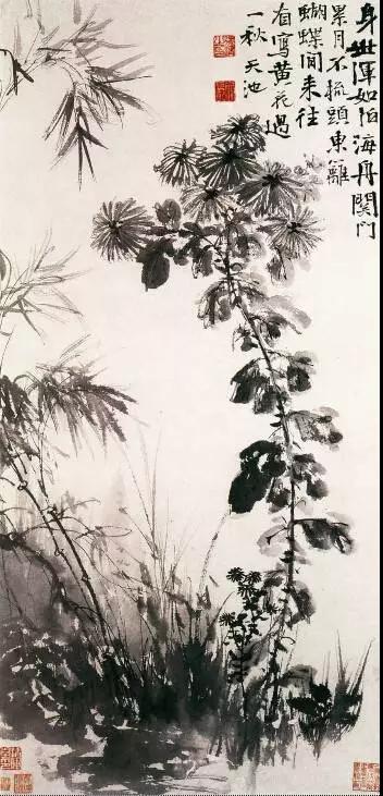 画梅有粗细,墨中要见笔,顿挫与顺逆,枝中要求曲。枝干应穿插,画枝如写“女”。叠花似“品”字,分组菊疏密,攒三和聚五,主宾莫分离,俯仰与向背,用色需统一。