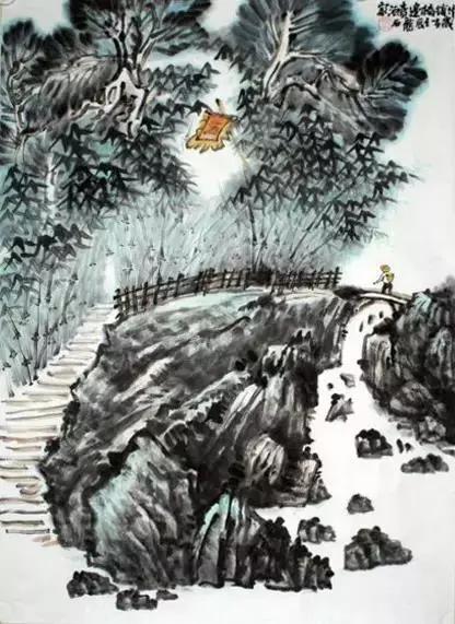 多数考生用写实的方式描绘了小桥、竹林、流水等。
