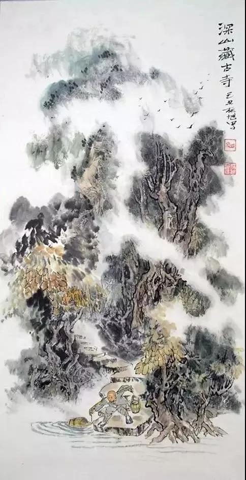 画中的古寺要“藏”起来,而且还要让人觉得它是存在的。