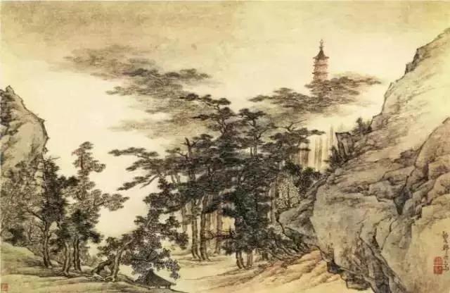 此画表现“深山藏古寺”含蓄而境界深邃,构思巧妙,满分!