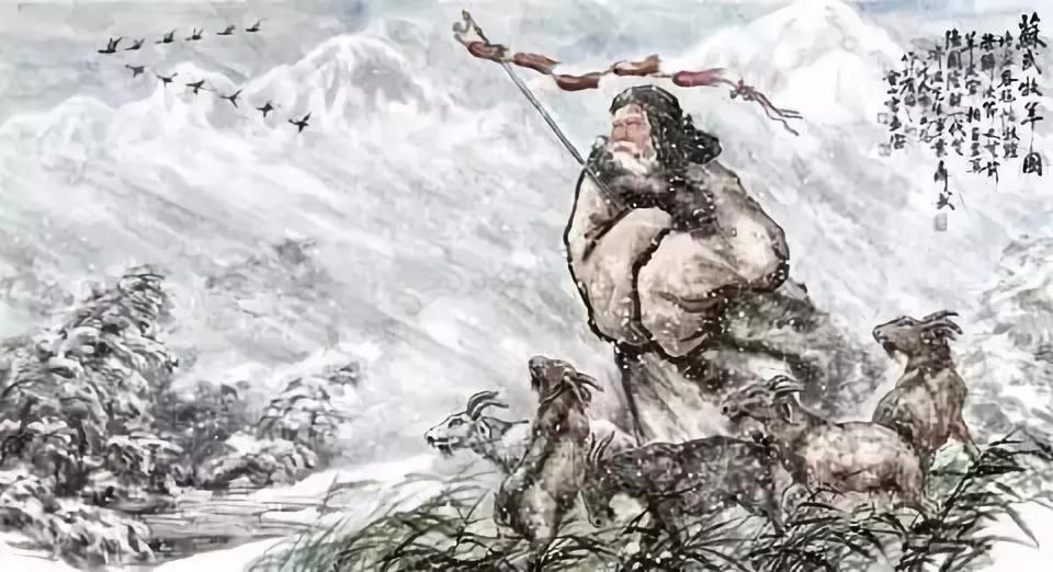 苏武在异国的冰天雪地中,正在打瞌睡,睡梦中一定是千万里远的家乡,一幅清冷、凄凉、愁惨的气氛,令人触目伤怀。