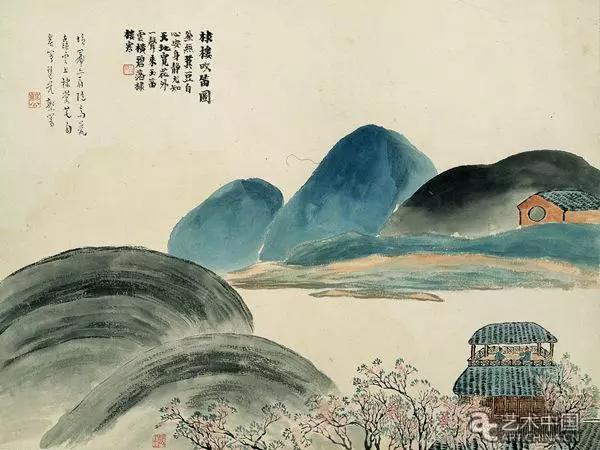 石门二十四景之棣楼吹笛图 齐白石 1910年 34×45.5cm 册页 纸本设色 辽宁省博物馆藏