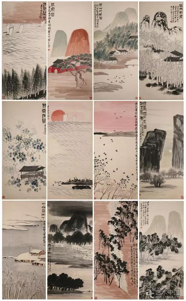 齐白石1932年所作《四季山水十二条屏》
