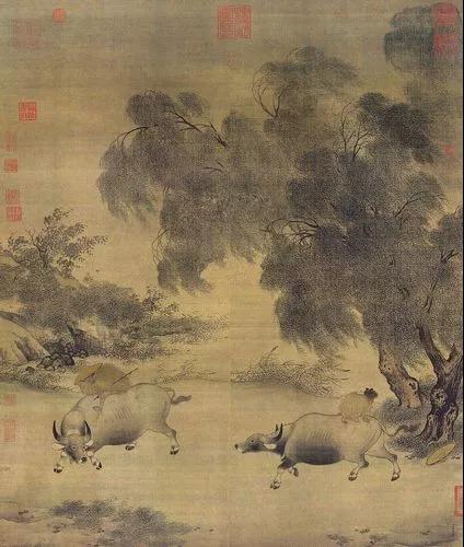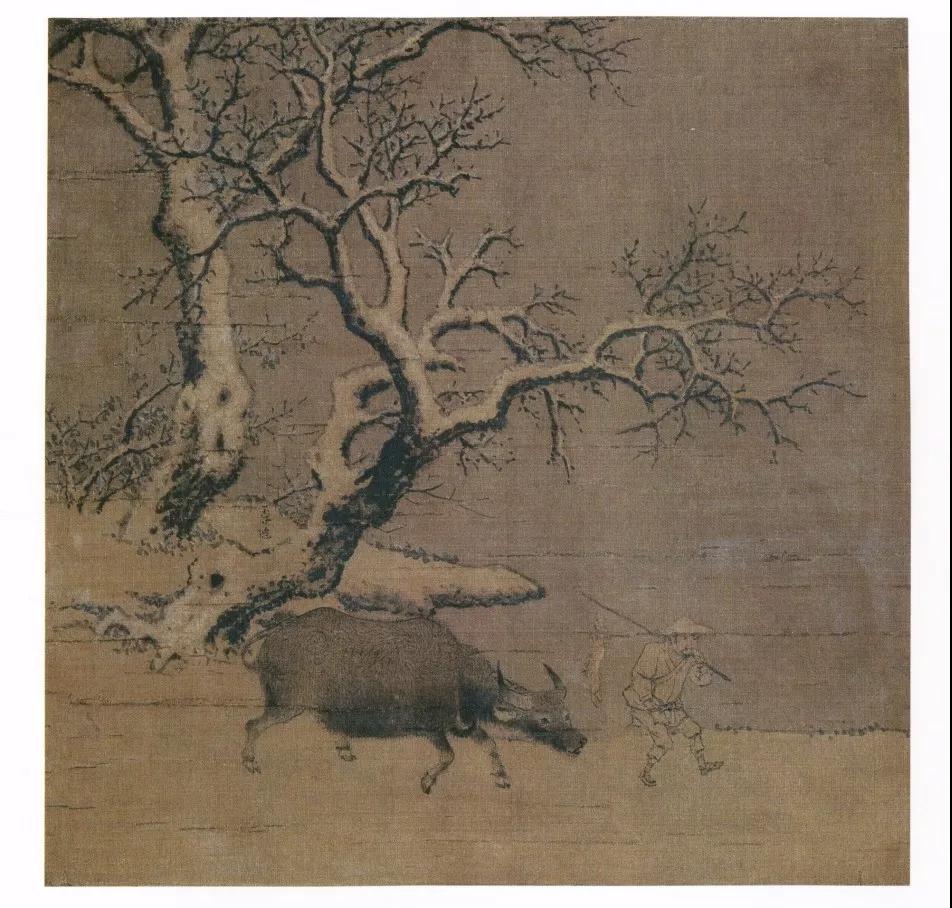 中国美术学院艺术人文学院教授毛建波:李迪《风雨归牧图》描绘风两骤起之时,两位牧童披戴笠,匆匆赶牛回家的情景。题材虽小,而内涵丰富,刻画入神。