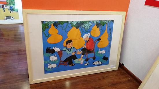画农民画,在吴冀生的生活里是奢侈的享受。五世同堂的他,一面忙着孝顺年近一百岁的老母亲,一面干着力所能及的农活。眼睛有白内障的他,每天只能坚持画一个多小时。“王银匠说,俺娘有一坛银子埋墙下面了,俺得好好孝顺。”吴冀生笑着说。听完这话,记者当时一愣神,转念一想,原来这是个“段子”,随众人会心地哈哈大笑。