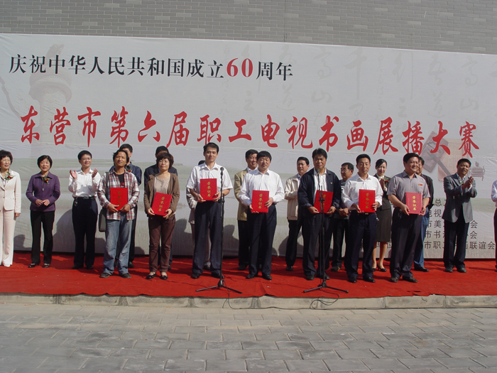 209年9月23日,庆祝中华人民共和国成立六十周年,东营市第六届职工电视书画展播大赛展览和颁奖仪式在东营黄河美术馆举行。展览共展出书法、国画、油画等作品130余幅,东营市政协副主席、总工会主席王少飞等有关领导出席开幕式并参观展览。通过这次展览极大地提高了企业文化水平和职工业余生活质量,展览取得了圆满成功。