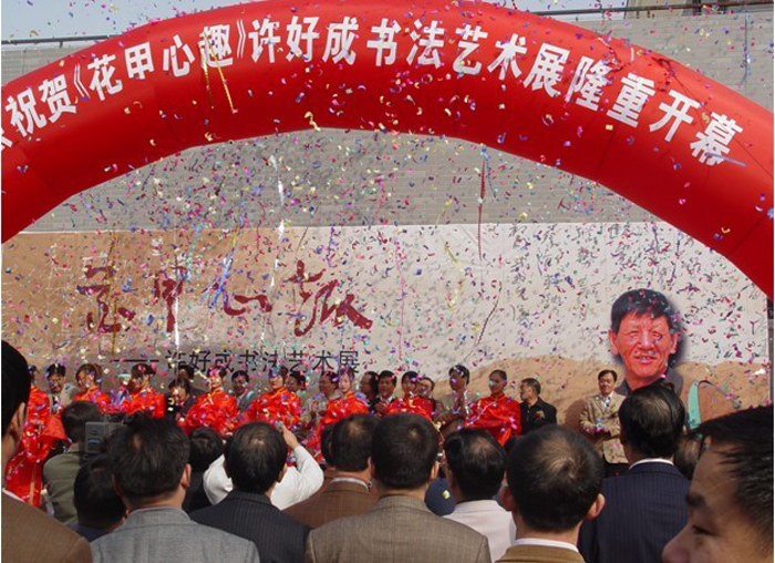 花甲心趣¬——许好成书法作品展在黄河美术馆隆重开幕 10月20日,由山东省书法家协会、中共东营市委宣传部等五单位联合主办的"花甲心趣——许好成书法作品展" 在东营市黄河美术馆隆重开幕。中国书协副主席、山东省书协主席张业法,中国书协理事、中国艺术研究院博士生导师张荣庆,中共东营市委副书记刘曙光,中共东营市委常委、宣传部长田青云,东营市原政协主席、黄河口书画研究会主席陈锡山,东营市政协副主席、市总工会主席王少飞,东营市原人大副主任滕化迎、贾其贤,东营市职业学院党委书聂肇正,中国书协理事、北京书协副主席李有来,山东省书协副主席段玉鹏、赵长刚和黄河口地区书画爱好者300余人参加开幕式并参观了展览。 许好成,字仰韶,号泊西渔夫,山东广饶人,中国书法家协会会员,东营市书法家协会主席。许好成是近年来东营地区涌现出的优秀书法人才、学科带头人。在近半个世纪的翰墨生涯中,他深入传统、广揽博采、拥抱新潮、书画并进,在书画特别是草书创作上形成了自己文质相生,古拙苍茫的艺术面貌,连续入展第七、八、九届全国书展,荣膺"黄河口文艺奖"和“泰山文艺奖”。他以"读万卷书、行万里路"的精神砥砺自己的学术品格,潜心治学,笔耕不辍,发表、出版了一系列书法研究和评论文章。他长期从事书协的组织领导工作,德艺双馨、甘为人梯,团结、培养和推出了一大批年轻书法人才,为提升和繁荣黄河口地区书法创作水平做出了突出贡献。 花甲心趣,是年届花甲的许好成近年来书法创作的一次集中展示,共展出作品120余件,作品形式新颖别致,条屏、对联、中堂、斗方、手卷、尺牍小品精彩纷呈;题材丰富多样,篆、隶、楷、行、草琳琅满目,给观众留下了强烈浓郁的审美感受。 《花甲心趣——许好成书画集》、<谈书说话——许好成书画评论文集>、《大地长河生命——许好成诗文集》首发式暨许好成书法艺术研讨会同时举行。许好成书法艺术研讨会由山东省书协副主席赵长刚主持,张业法、张荣庆等60余名专家、学者、书画爱好者围绕许好成的书法创作、艺术风格、笔墨精神和现实意义进行了研讨交流,对许好成的艺术成就给予了充分肯定。(董淑萍)