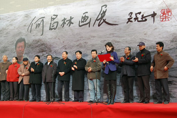 为迎接新年元旦,由东营市文联、东营市文体局主办,东营市美协、书协和黄河美术馆承办的何昌林画展,于2009年12月25日在东营市黄河美术馆举行。 何昌林先生,四川新都人,自幼研习中国画;山水、人物、花鸟皆精。美术评论、理论文章俱佳。 何先生的作品有着深厚扎实的传统功力和认真严谨的艺术态度,他很好的把中国画笔墨语言的现代表述体现在对自然的感悟中,使笔墨与情感,传统与创新,造化与心源得以完美的结合和统一,从而形成了自己特有的艺术表现手法和风格。此次展览作品,是何先生近期力作,也是何先生奉献给东营人民的节日大餐。东营市有关领导、书画爱好者和书画收藏家,冒着严寒参加了何昌林画展开幕仪式。