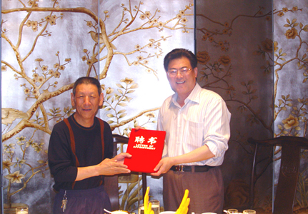 图为黄河美术馆馆长许好成为尚观华先生颁发聘书