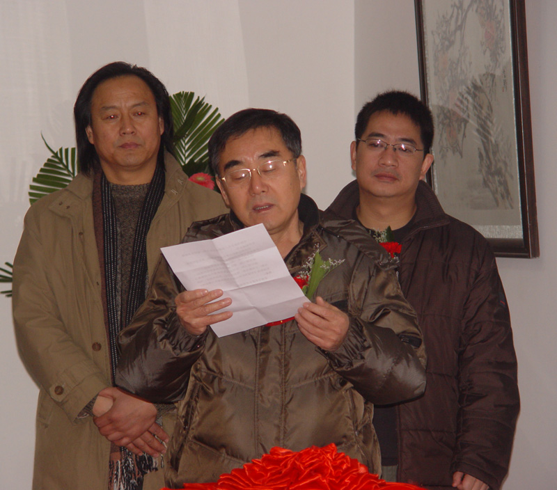 尊敬的各位领导、各位来宾、女士们、先生们: 大家上午好! 今天是圣诞节,明天是开国领袖毛泽东主席诞辰117周年纪念日,再过几天就是2011年新年元旦。 为了丰富节日文化生活,由市文化广电新闻出版局主办、黄河美术馆承办的《中国当代实力派花鸟画名家六人精品展》现在开幕。 参加六人精品展的画家是: 朱岩先生、石建勋先生、陈春剑先生、张超先生; 苏宗胜、陈宏光先生,因天气原因还在从北京赶往现场的路上。 让我们以热烈的掌声对他们表示欢迎。 出席今天开幕仪式的嘉宾有: 著名书法家、黄河口书画艺术研究会主席、中国书法家协会会员、原东营市政协主席陈锡山先生; 东营市政协副主席、工商联主席王景春先生; 东营市技术学院党委书记、黄河美术馆名誉馆长尚观华先生; 东营市职业学院院长、著名人物画家张洪生先生; 东营市委宣传部副部长、市文化广电新闻出版局局长马洪军先生; 中国书协会员、东营市书协主席、黄河美术馆馆长许好成先生; 在这里让我们用掌声对各位领导、各位嘉宾冒着严寒出席开幕仪式表示衷心的感谢 仪式进行第一项,请许好成馆长致词; 进行笫二项,请参展画家代表朱岩先生讲话; 进行第三项,让我们用热烈的掌声欢迎陈锡山主席、王景春主席、尚观华书记、张洪生院长、马洪军局长为《中国当代实力派花鸟画名家六人精品展》剪彩。 请领导和嘉宾参观画展。