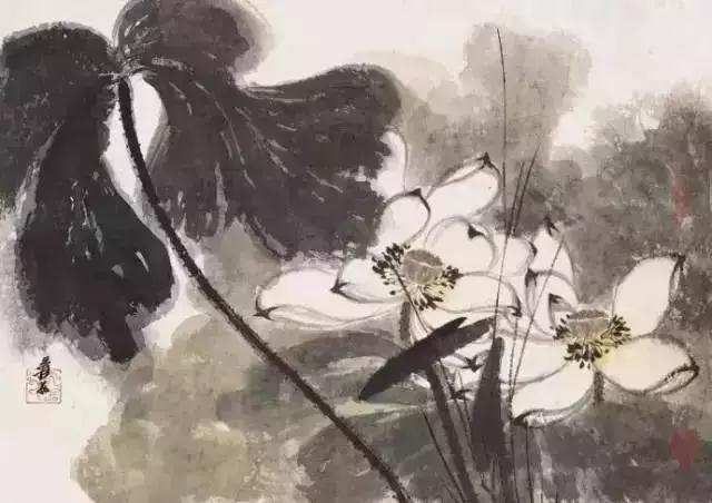 水破墨就是先落墨纸上,然后以饱含水份的笔破之。运用这种方法,往往会使纸上留有墨痕,同时又显出水晕效果来。用此法画雨中荷花较好,人们通常爱以墨色画荷叶,通常容易出现笔扫痕(飞白),若用水及时进行破之,会出现水气淋漓的效果,而且笔痕也可以若隐若现的保留着。即可保持线的扩大,也可形成面的感觉。用此法画大幅水墨荷花图是较为理想的方法。