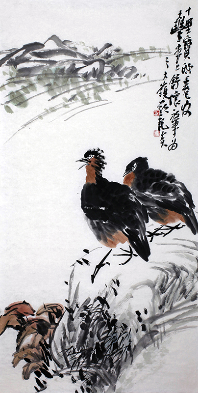 崔子虎  字大岭,19777月出生山东淄博人,居北京擅花鸟山水亦作人物,作品多次入选全国展览并获奖。现为中国美术家协会会员山东画院画师清华美院书画高研班导师