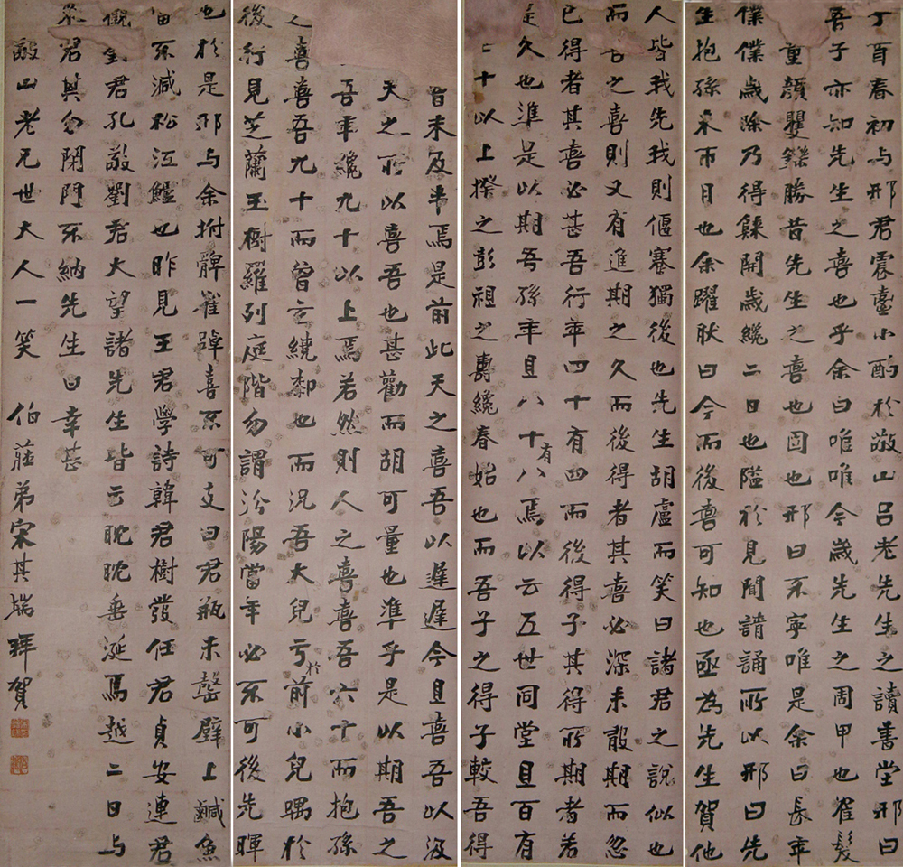 (1848—1915) 字伯庄, 一字墨庄。广饶县西营乡杨庄村人。1876年(光绪二年)中举人。曾任博平县(今山东茌平县)训导。以善书法著名。自唐宋各家至汉魏六朝诸石刻,均临摹殆遍。每学一家,不到逼真不肯罢休。他的字体奇异古怪,刚劲有力,集众书法家之长自成一派。时人称其“不啻与郑板桥氏相上下”