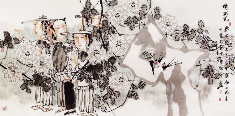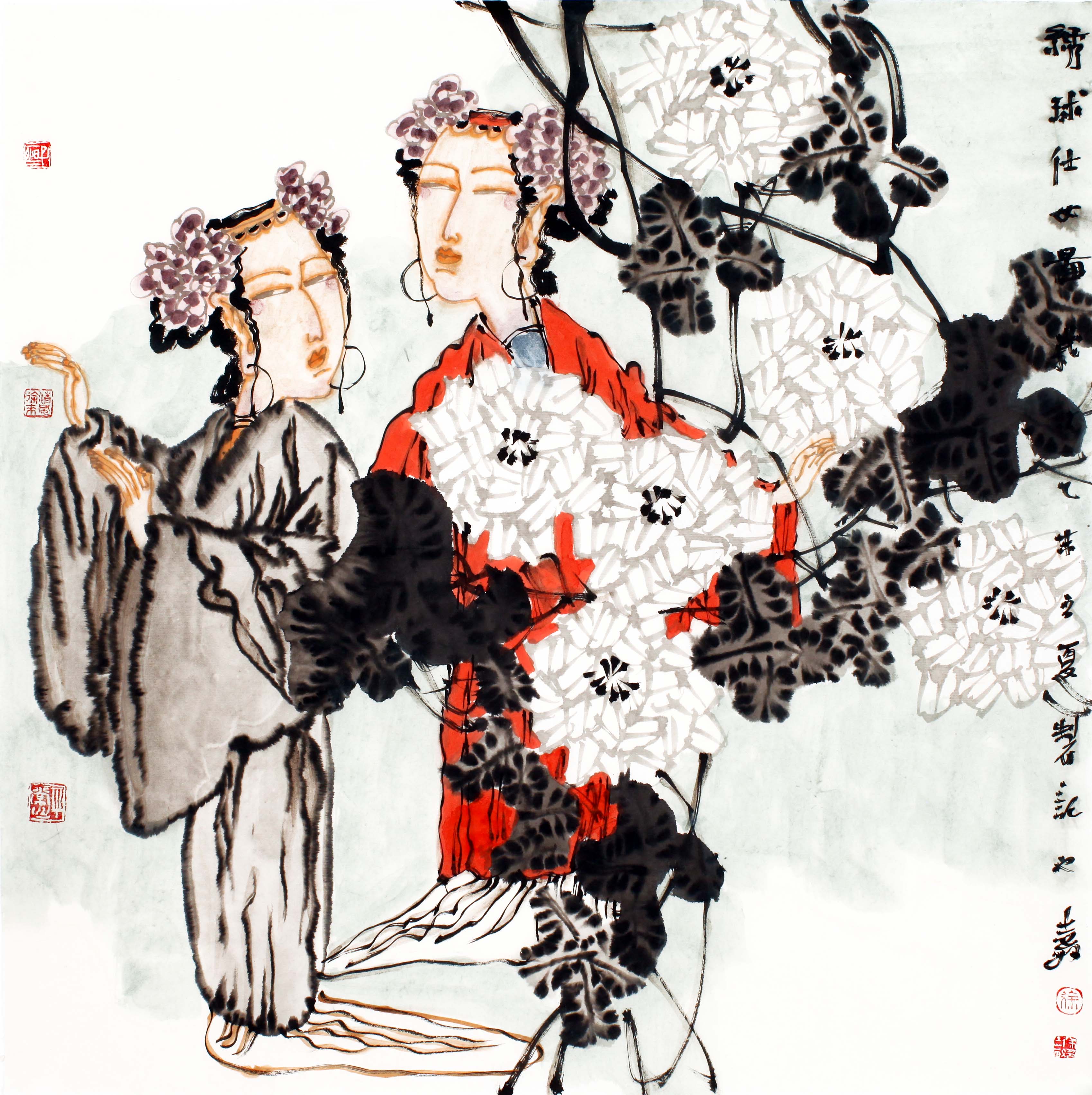 绣球仕女图